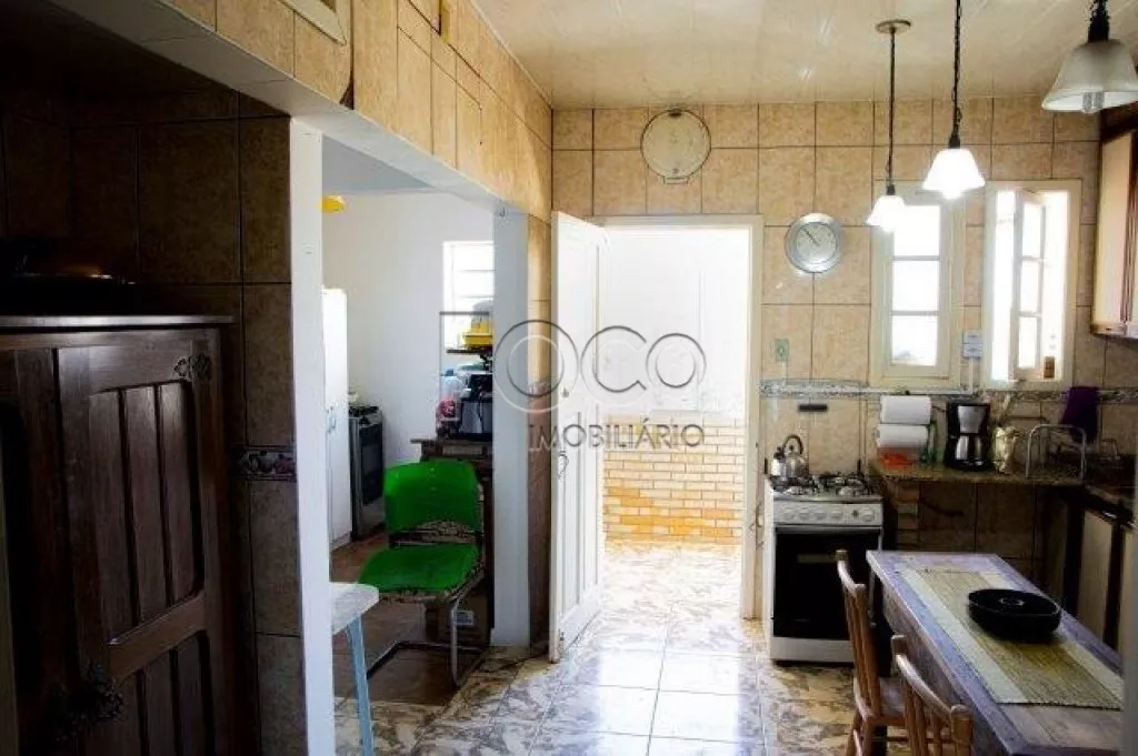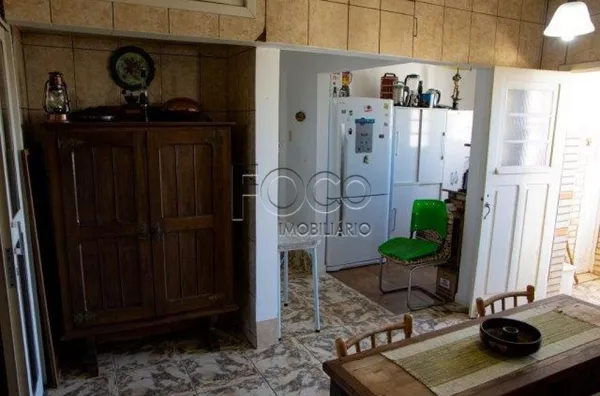 Cozinha: Mesa com 3 cadeiras, armário rustico, 2 armários despensa, adega de vinho, fogão, geladeira, micro-ondas, filtro de água, 3 lustres, mesa de entrada.