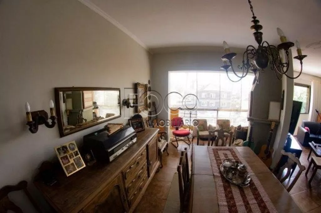 Sala 3: Mesa antiguidade com 6 cadeiras, armário antiguidade, e cadeiras, espelho na parede, 2 lustres de sala, cortina persiana e tapete na sala.