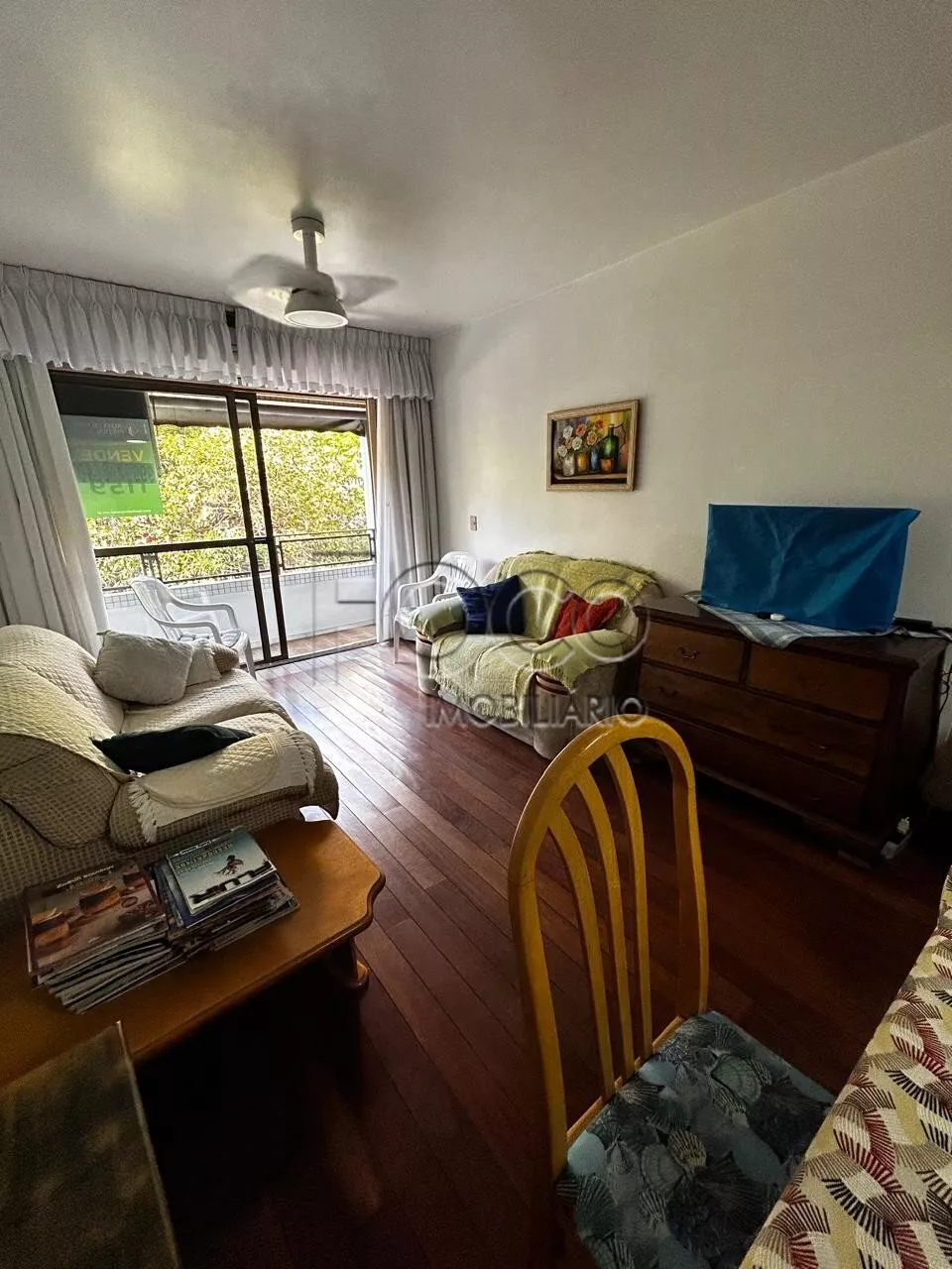 Ampla sala com sacada e linda vista verde. Copa/cozinha com excelente espaço e área de serviço separada com churrasqueira.
