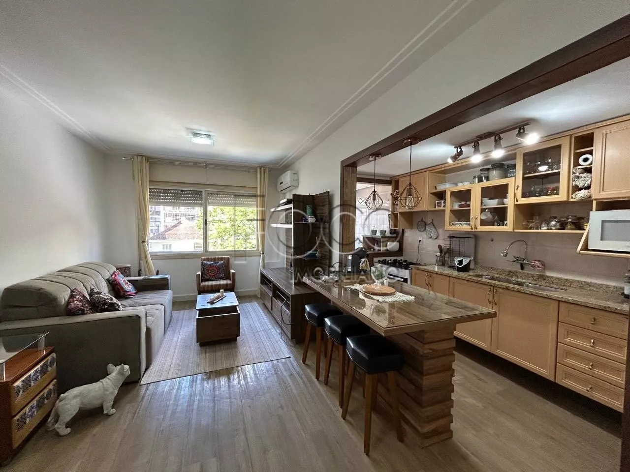 Excelente apartamento de 1 dormitório com vaga de garagem coberta, TODO MOBILIADO, saem apenas alguns objetos pessoais. O apartamento conta com Junker, um split quente e frio na sala e split frio no quarto. É só entrar e morar, se você busca um imóvel pronto, em bairro nobre, esse é pra você! Entre em contato e agende a sua visita pelo Whatsapp 51 99573.2311.