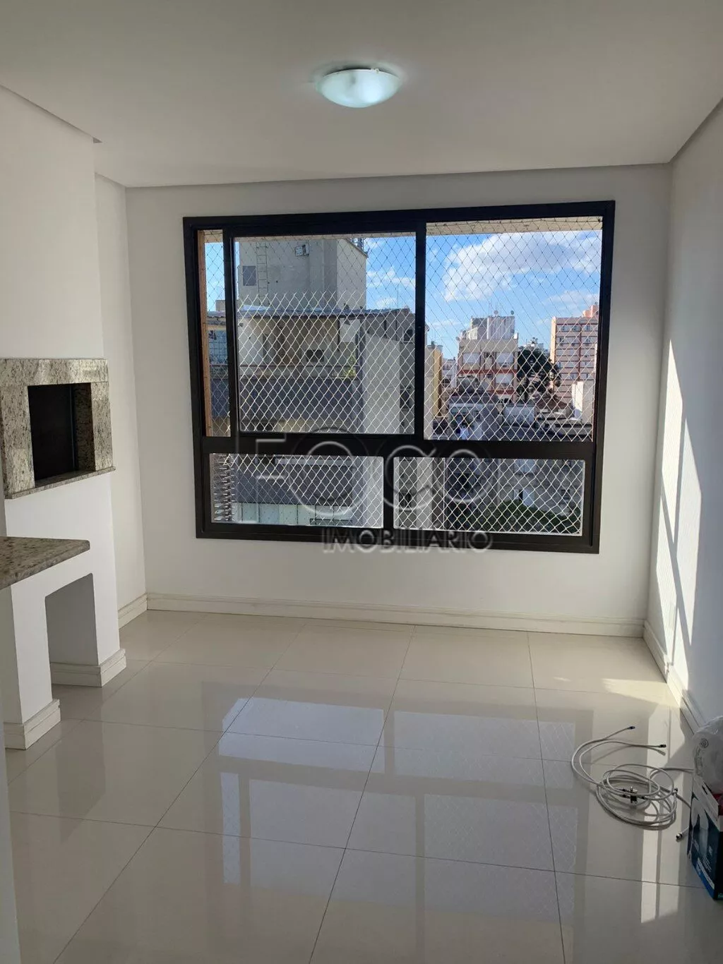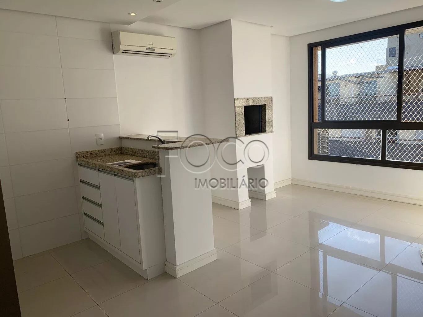 Apartamento de um dormitório, cozinha americana com moveis, living com churrasqueira, andar alto com vista e muito sol, uma vaga de garagem.